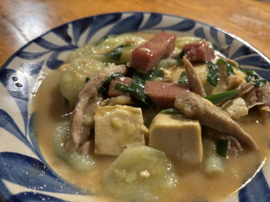ヘチマと島豆腐、ポークを甘辛く炒めたものです。