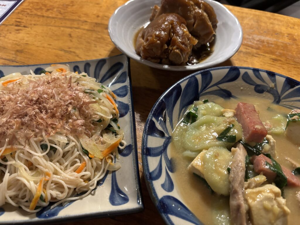 ナーベーラー、ソーメンチャンプルー、テビチーです。