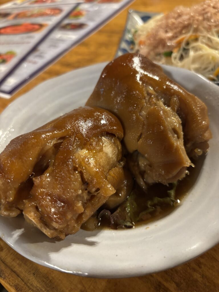 テーブルに置いてあったコーレーグースー(泡盛に唐辛子をつけた調味料)をかけてみたら、さらに美味しくいただけました。